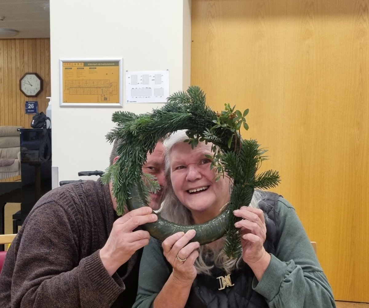 Það er hefð fyrir þvi að útbúa fallega jólakransa á aðventunni hér í Ási. Heimilismenn hittust nýlega til að útbúa kransa og ýmiskonar jólaskraut til að skreyta með hér í Ási.