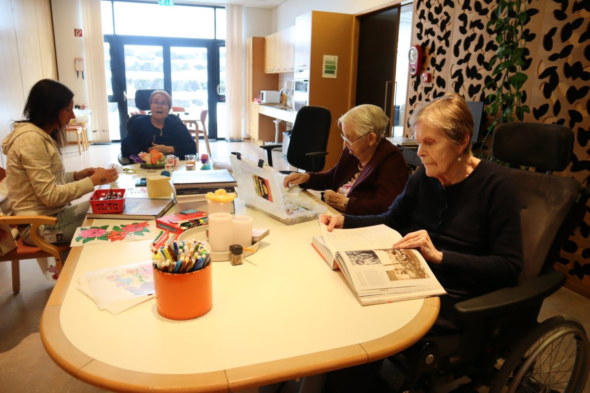 Þá er spjallað, sumir prjóna, mála, fletta blöðum eða fást við eitthvað annað sem veitir þeim gleði. Notalegar stundir og allir velkomnir.