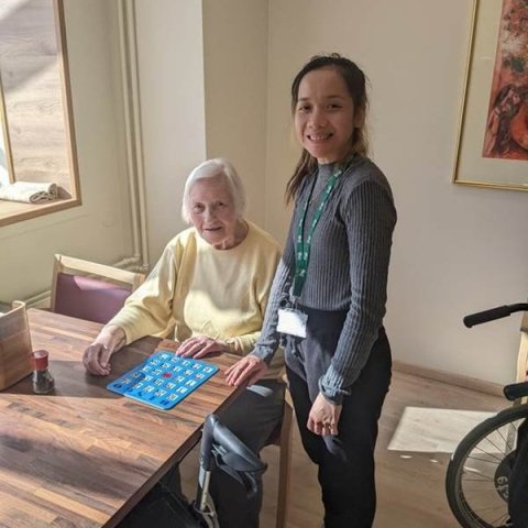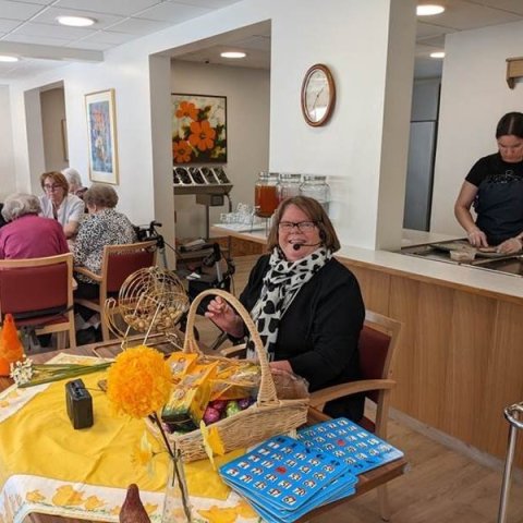 Og páskaeggjabingóið heldur áfram hér á Grund, í dag hjá heimilisfólkinu á Litlu og Minni Grund. Vinningarnir vöktu gleði, páskaegg af ýmsum stærðum. Í lokin dró Jón Ólafur upp nikkuna sína og þá var nú aldeilis kátt í kotinu.