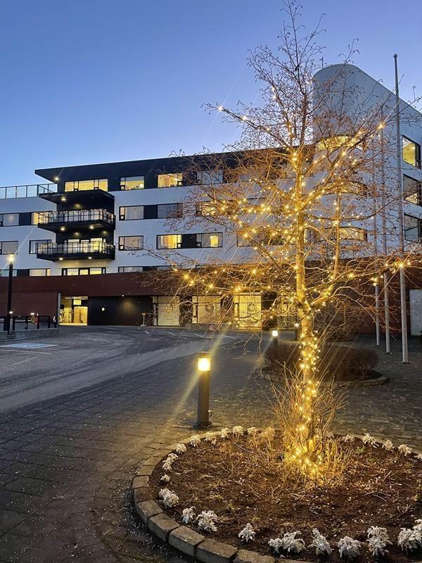 Í nóvember byrjuðum við í Mörk að undirbúa jólin. Húsvörðurinn setti upp seríu á tréð við húsið í bílastæðaportinu og ræstingin hengdi upp jólakransa með seríum á göngum. Það þarf ekki mikið til að fá hlýleika og birtu þegar dimmt er úti. Nú er desember að ganga í garð og þá munu jólatré vera sett upp og meira jólaskraut.